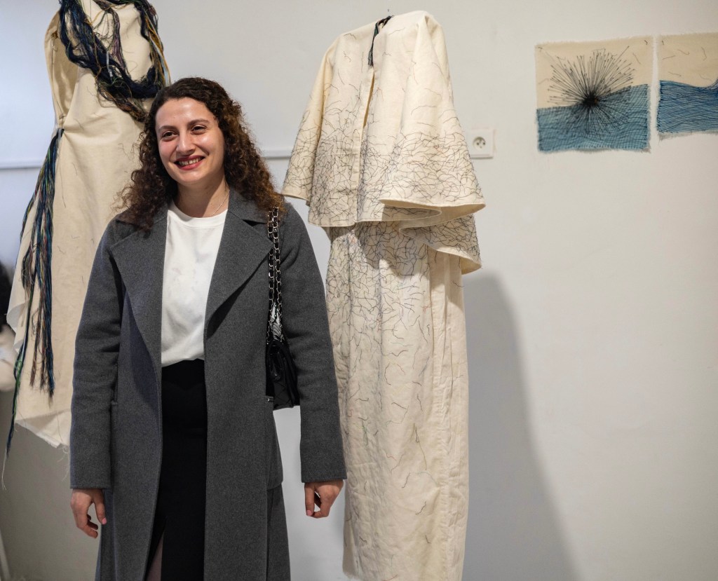 Proje, günlük çamaşır makinelerinden alınan örneklerden ve mikroskop altındaki küçük görüntülerden ilham alıyor, beni iplikler ve kumaşlar dünyasına dalmaya yönlendiriyor, ve her bir dikiş beni zanaatıma daha da yakınlaştırıyor.”