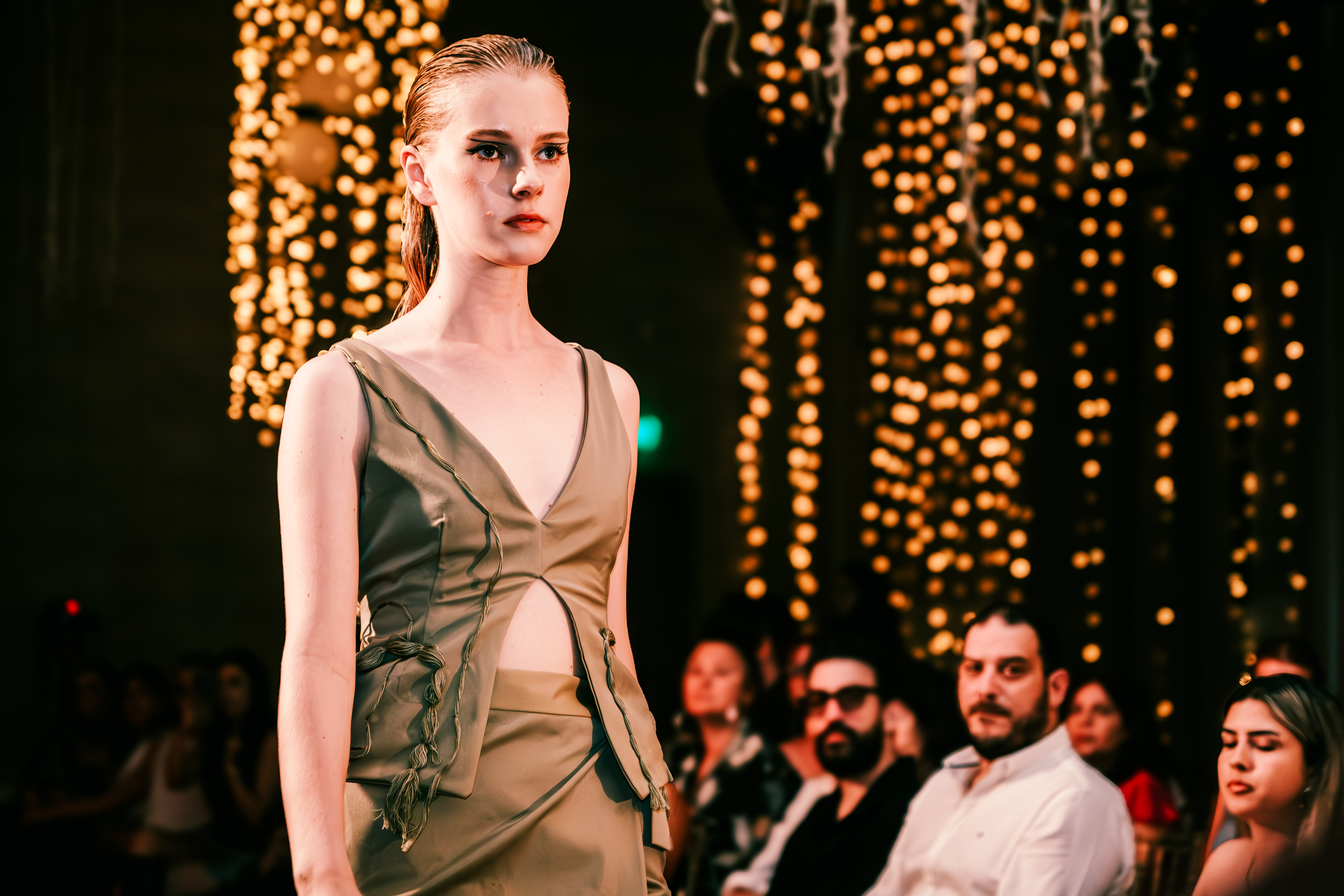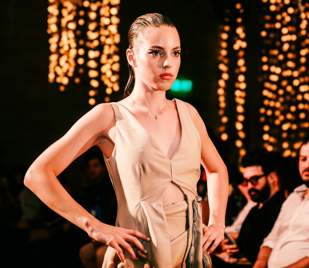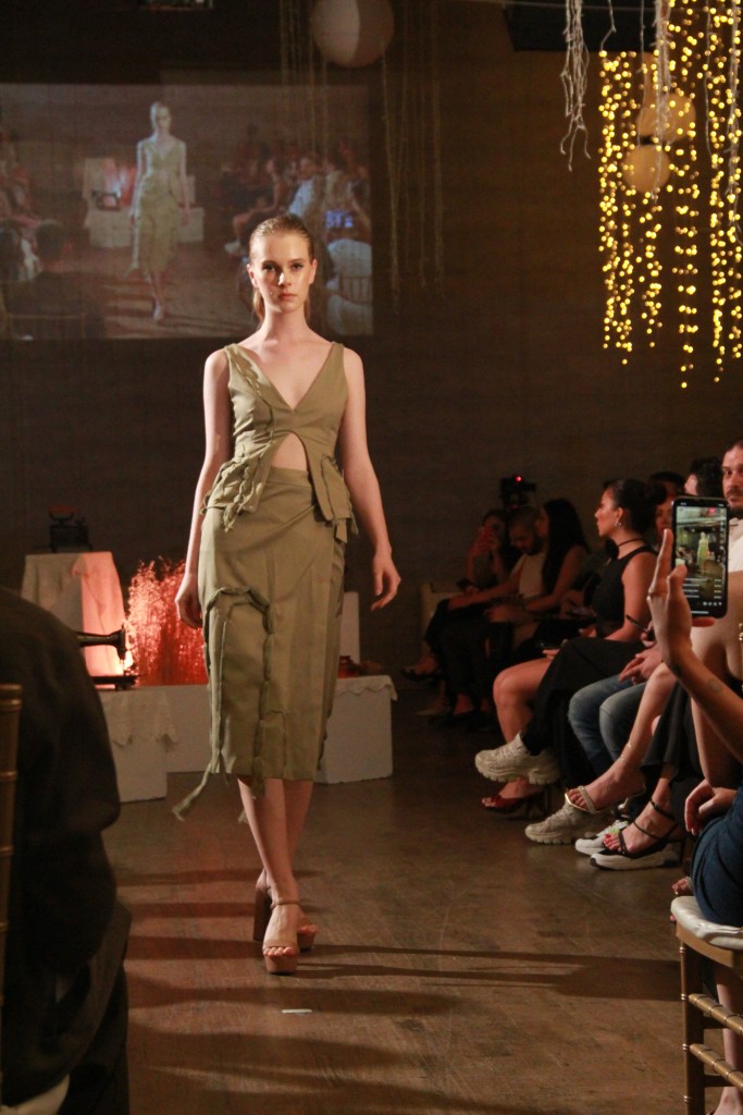 “Reimagining Cypriot architecture through fashion, Elin Yurtdaş brings the beauty of heritage into every stitch. Beige cotton canvas, reminiscent of her mother’s dowry chest, sets the stage for earthy green, sage, and brown threads inspired by olive trees and Lefkara embroidery. These intricate arches woven into each design are a tribute to Cyprus’ rich cultural legacy.” – FHNC Team
